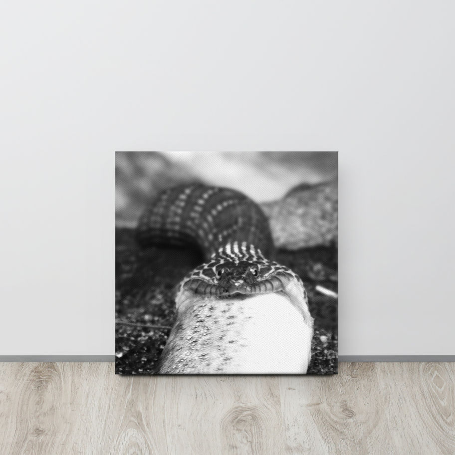 Black n White Snake Eating Fish Canvas